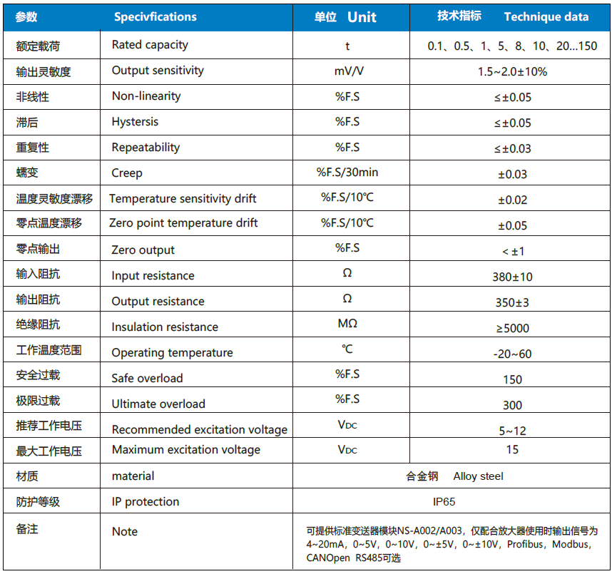 NS-WL2系列傳感器采用柱型剪切結構;